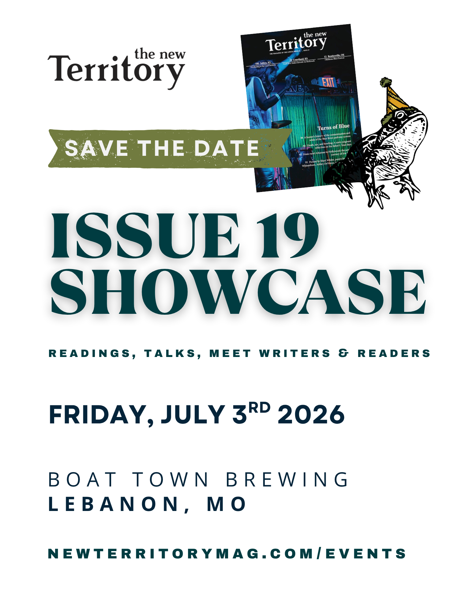 Join us to celebrate Issue 19 at Boat Town Brewing in Lebanon, Missouri! Join The New Territory Magazine editors, contributors, and friends for an afternoon of readings and celebration! Meet Our Readers Amy De La Hunt Amy De La Hunt is a journalist, writer and editor living in the St. […]